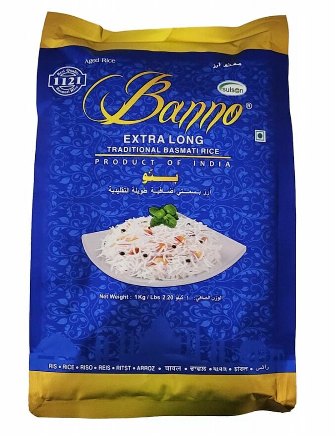 Banno, marka Sulson Overseas, to synonim najwyższej jakości ryżu basmati z Indii. Ceniona globalnie za wyjątkowy aromat i smak, spełnia oczekiwania najbardziej wymagających smakoszy.Ryż Basmati Extra Long Banno to starannie selekcjonowana odmiana długoziarnista o wyjątkowo smukłych, wydłużających się podczas gotowania ziarnach, delikatnym, lekko orzechowym aromacie i sypkiej, puszystej strukturze. Dzięki naturalnej „rozsypującej się” teksturze doskonale sprawdza się w biryani, pulao i aromatycznych curry, a także jako elegancki dodatek do mięs, ryb, warzyw i dań wegetariańskich. Ziarna pozostają rozdzielone i lekkie, co ułatwia serwowanie i uzyskanie restauracyjnego efektu na talerzu. Sposób przygotowania: przepłucz do klarownej wody, opcjonalnie namocz 20–30 minut; gotuj w proporcji ok. 1:1,5–1,75 (ryż:woda) na małym ogniu pod przykryciem przez 12–15 minut, następnie odstaw 5–10 minut i spulchnij widelcem (w garnku ryżowym wybierz program do ryżu białego/basmati). Idealnie łączy się z kardamonem, cynamonem, goździkami, liściem laurowym i masłem ghee. Naturalnie bez glutenu i o niskim indeksie glikemicznym — świetny wybór do zbilansowanych posiłków (zawsze sprawdź etykietę w kwestii alergenów krzyżowych). Przechowuj w suchym, chłodnym i zacienionym miejscu, w szczelnie zamkniętym pojemniku, z dala od wilgoci i intensywnych zapachów, aby zachować świeżość i aromat.