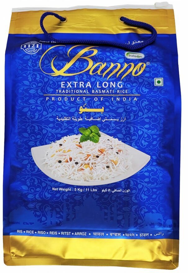 Banno, marka Sulson Overseas, to synonim najwyższej jakości ryżu basmati z Indii. Ceniona globalnie za wyjątkowy aromat i smak, spełnia oczekiwania najbardziej wymagających smakoszy.Ryż Basmati Extra Long Banno to starannie selekcjonowana odmiana długoziarnista o wyjątkowo smukłych, wydłużających się podczas gotowania ziarnach, delikatnym, lekko orzechowym aromacie i sypkiej, puszystej strukturze. Dzięki naturalnej „rozsypującej się” teksturze doskonale sprawdza się w biryani, pulao i aromatycznych curry, a także jako elegancki dodatek do mięs, ryb, warzyw i dań wegetariańskich. Ziarna pozostają rozdzielone i lekkie, co ułatwia serwowanie i uzyskanie restauracyjnego efektu na talerzu. Sposób przygotowania: przepłucz do klarownej wody, opcjonalnie namocz 20–30 minut; gotuj w proporcji ok. 1:1,5–1,75 (ryż:woda) na małym ogniu pod przykryciem przez 12–15 minut, następnie odstaw 5–10 minut i spulchnij widelcem (w garnku ryżowym wybierz program do ryżu białego/basmati). Idealnie łączy się z kardamonem, cynamonem, goździkami, liściem laurowym i masłem ghee. Naturalnie bez glutenu i o niskim indeksie glikemicznym — świetny wybór do zbilansowanych posiłków (zawsze sprawdź etykietę w kwestii alergenów krzyżowych). Przechowuj w suchym, chłodnym i zacienionym miejscu, w szczelnie zamkniętym pojemniku, z dala od wilgoci i intensywnych zapachów, aby zachować świeżość i aromat.